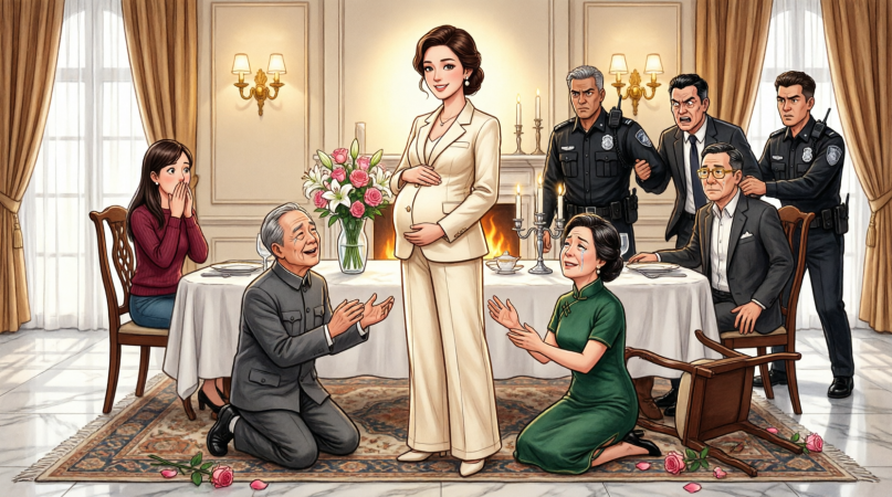 I stood up slowly, pushing my chair back. I smoothed the front of my gravy-stained maternity dress, my posture perfectly straight, entirely untouched by the panic engulfing the room.
