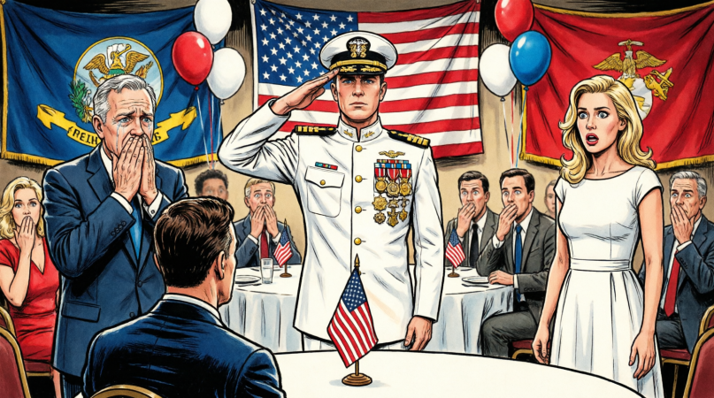 Jake caught up to me in the hotel lobby and said I was right to leave. He admitted he had not known about the slideshow, and I believed him. Then he said something I have not forgotten since: the salute wasn’t the important part. The important part was that he meant it. When the elevator doors closed between us, I left him in the lobby, my family in the ballroom, and whatever version of myself they preferred somewhere back under the lights.