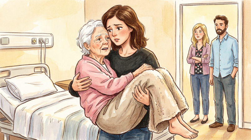 You know that look. It is not fatigue exactly. It is grief hitting an old body that has already paid too much for love. You reach for the water bottle in her bag, help her sip, then tuck the blanket closer around her shoulders. Even now, with your marriage in ashes and legal papers moving like knives behind the scenes, your hands know exactly how to make another person more comfortable.
