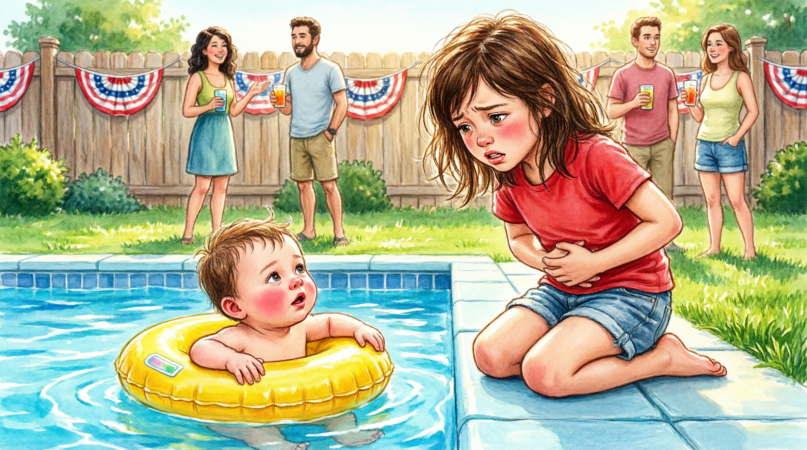 She decided to push the nagging thought aside as she walked toward the sparkling pool where half a dozen children were already splashing and shouting loudly. That was when she noticed someone was missing from the group of swimmers.