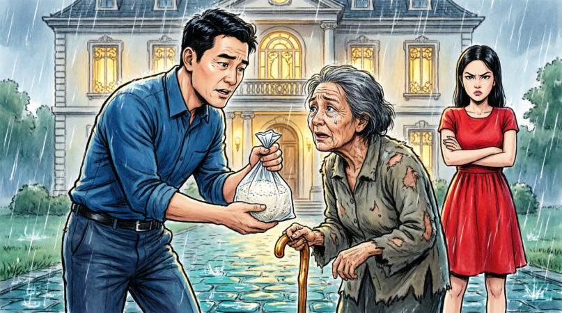 Mrs. Turner lowered her head, clutching the rice tightly to her chest, trying to hide the tears running down her cheeks. The iron gate shut behind her, leaving her alone in the rain.