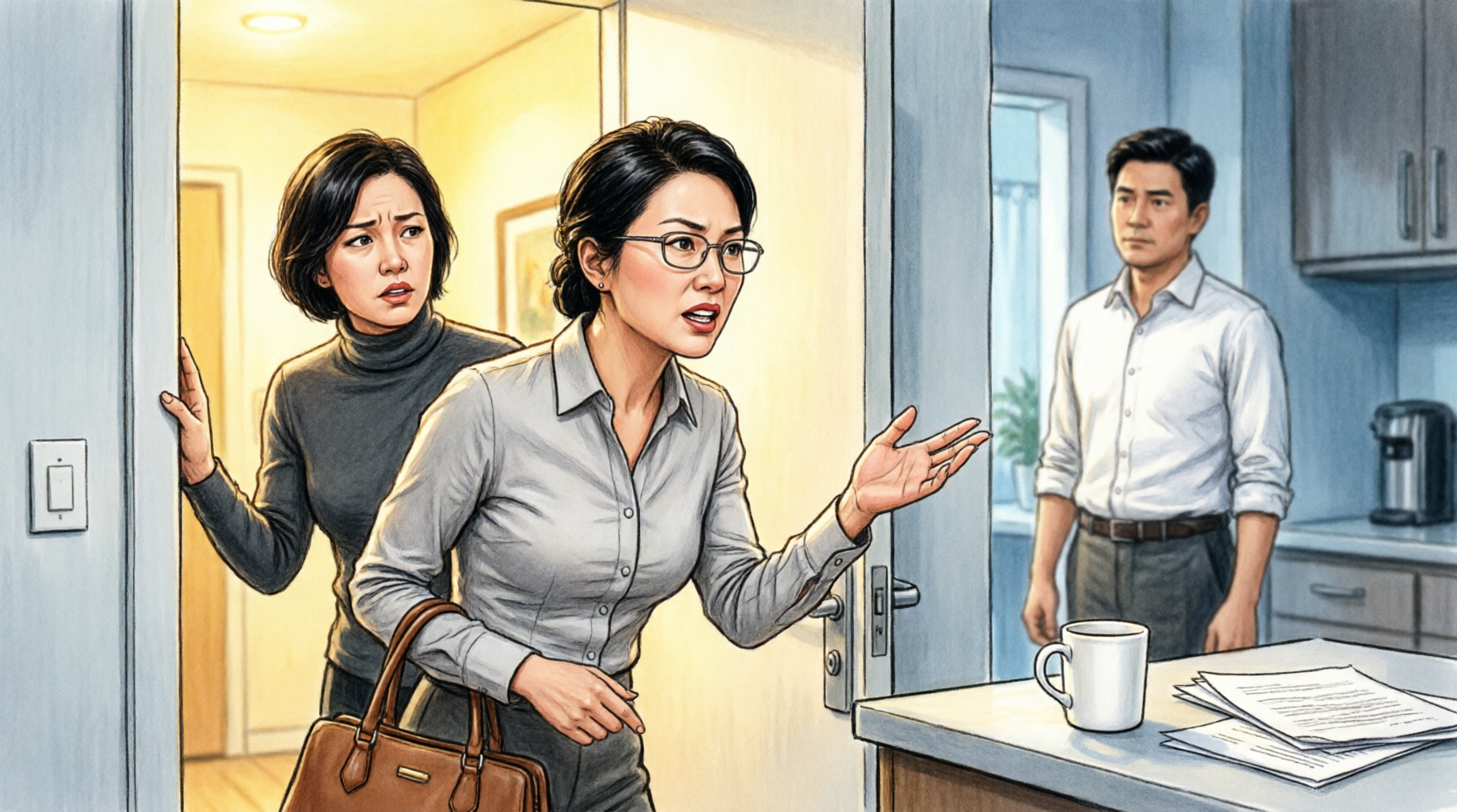 Through the peephole, I saw her—perfectly dressed, furious—and Anthony beside her, tense. Neighbors were already watching.