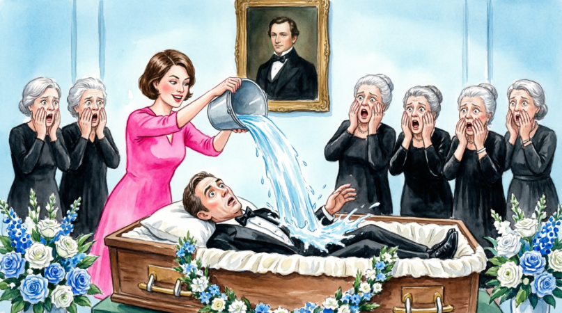 Without warning, she knelt beside the coffin and, with unflinching resolve, emptied the bucket onto Daniel’s face.