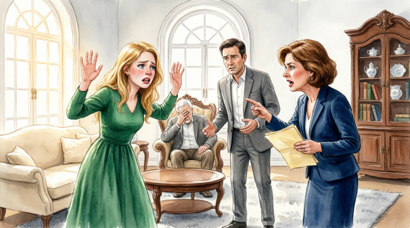 “Then you should know better than to present coercive timing as harmless paperwork. You’ve arrived at a private home without notice, carrying a legal instrument meant to pressure one party into surrendering rights she hasn’t even tried to claim. That is not prudence. That is theater.”