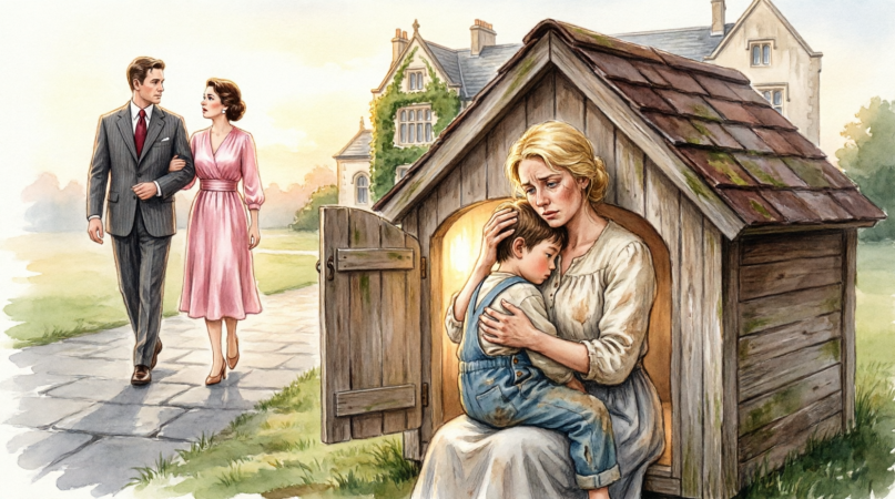 For a split second, she stood frozen—then rushed outside, her movements suddenly hurried, her composure slipping. She ran toward the doghouse, yanked the door open slightly, and hissed: