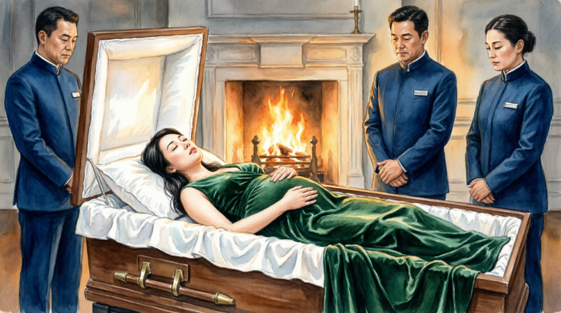 Through the crematorium glass, Ethan spotted his wife’s pregnant belly trembling ever so slightly. At first, he thought grief was distorting his vision but then it occured again, sharper, unmistakable.