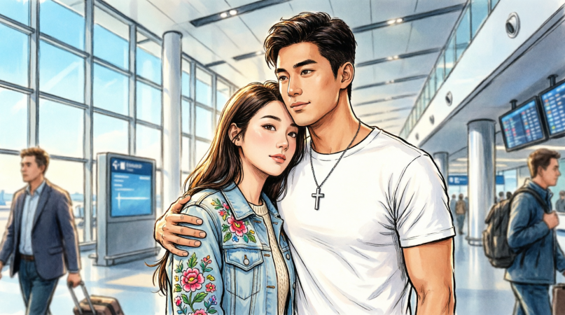 People hurried past us with rolling suitcases and anxious expressions, but in that moment, the world felt as though it had narrowed to just the two of us.