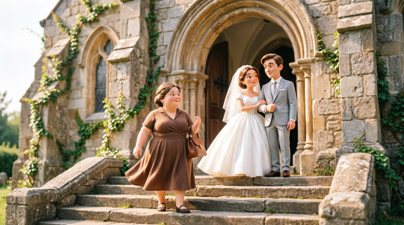 I glanced inside the church and saw her—Vanessa, the bride—standing confidently among the guests in her fitted white dress, showing off exactly what she always liked to show.