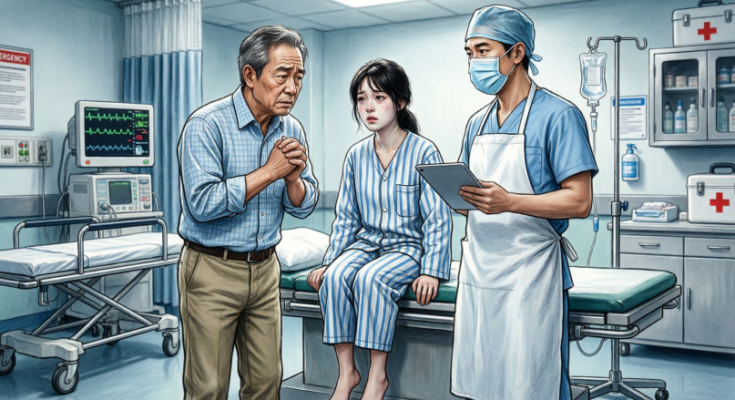 Part1: My ten-year-old daughter said she had a toothache, so I planned to take her to the dentist. Suddenly, my husband insisted on coming with us